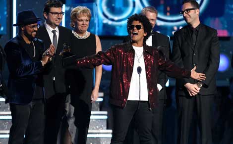 El cantante fue la figura de la gala 60 de la Academia Nacional de Artes y Ciencias de la Grabación de Estados Unidos, al obtener los gramófonos más importantes: canción del año por That’s What I Like, así como grabación y álbum del año, por 24K Magic; en total se llevó seis distinciones. El rapero Kerndrick Lamar también se llevó cinco galardones. Despacito, de Luis Fonsi y Daddy Yankee, se fue con las manos vacías, pese a ser uno de los éxitos globales más grandes de todos los tiempos; su video tiene más de 5 mil millones de vistas en YouTube Foto Ap