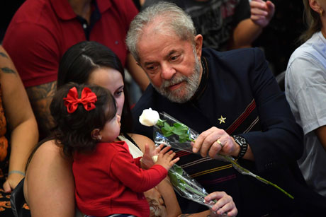 La defensa de Luis Inácio Lula da Silva presentó un recurso ante la Corte Suprema de Brasil en el que solicita que el ex presidente permanezca en libertad hasta agotar las instancias judiciales de apelación en el proceso por el que recientemente fue condenado en segunda instancia a 12 años de cárcel por corrupción. En la imagen, el líder histórico del PT, de 72 años, durante una misa celebrada ayer con motivo del primer aniversario de la muerte de su esposa, Marisa Leticia, en Sao Bernardo Foto Afp