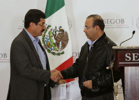 franco, respetuoso, directo y claropara solucionar el diferendo entre la administración estatal y el gobierno federal, el secretario de Gobernación, Alfonso Navarrete Prida (derecha), y el gobernador de Chihuahua, Javier Corral, signaron un acuerdo a las 10 de la noche de este sábado en el palacio de Covián Foto La Jornada