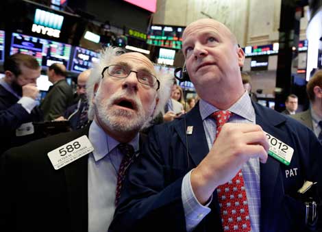 Estupefacción en el piso de remates de la bolsa de Nueva York ayer por la estrepitosa caída en el precio de acciones Foto Ap