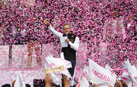 Muchas gracias por todo. Es un gran honor laborar con esta fuerza de los trabajadores de Ciudad de México, dijo con voz entrecortada el jefe de Gobierno, Miguel Ángel Mancera, durante un acto en el Zócalo capitalino, donde anunció la basificación de 10 mil empleados, algunos de los cuales tenían casi 30 años como eventuales o en interinatos Foto Víctor Camacho