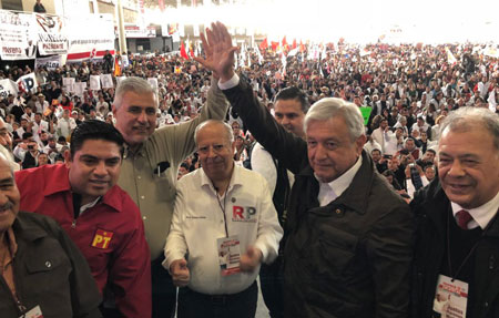 Ante más de 10 mil maestros de toda la República, reunidos en la ciudad de Zacatecas, el aspirante presidencial de la coalición Juntos Haremos Historia (Morena, PT y PES), Andrés Manuel López Obrador, confirmó que de ganar las elecciones derogará la reforma educativa y enviará al Congreso un nuevo proyecto de ley del servicio profesional docente. En el acto, al que lo acompañaron líderes regionales y nacionales de los partidos que lo postulan, Rafael Ochoa Vega, ex secretario general del SNTE, ratificó el respaldo del magisterio a su candidatura Foto La Jornada