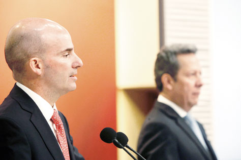 José Antonio González Anaya, secretario de Hacienda, y Eduardo Sánchez, vocero de la Presidencia, ofrecieron en Los Pinos una conferencia de prensa sobre las Perspectivas Económicas para 2018 y un recuento de los logros en cinco años de gobierno Foto Jesús Villaseca