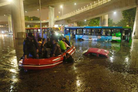 La intensa lluvia con granizo que cayó ayer en la noche afectó principalmente las delegaciones Tlalpan y Xochimilco, donde se reportaron inundaciones y el desbordamiento del río San Buenaventura, aledaño a la glorieta de Vaqueritos. En el cruce de Viaducto Tlalpan y Periférico (imagen) el agua superó el medio metro de altura; el Instituto Nacional de Cancerología resultó afectado en la zona. En Insurgente Sur el líquido impidió el paso de vehículos hacia la Villa Olímpica Foto Víctor Camacho
