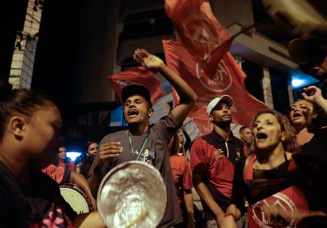 Simpatizantes del ex presidente brasileño Luiz Inácio Lula da Silva, quien fue condenado el pasado enero a 12 años y un mes de prisión por presuntos delitos de corrupción y lavado de dinero, se manifiestan frente a su domicilio en Sao Paulo. El juicio contra el ex mandatario ha estado plagado de irregularidades Foto Ap