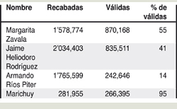 Veamos: cada uno de los participantes debía reunir, como ya dijimos, 864 mil 536 firmas. De los cuatro, tres lo consiguieron con creces pero… solamente Margarita pudo acreditar que había superado la cantidad obligada por 5 mil 632 con documentos auténticos y válidos. De hecho, si a la hora de su recuento las boletas correctas hubieran surgido una tras otra, al llegar a la cantidad exigida, ella pudo haber movido su dedito indicando: “aquí me planto”. Ni una más para mí. Como en un jueguito tan honorable como un black jack, en el Bellagio. (Perdón, señor Yarrington, ¿no me hace un campito? Pero no sucedió así y la señora Calderón tuvo que dejar que deshojaran sus firmas hasta el final, lo que resultó mortal de necesidad: 45 por ciento del total era, por diversas razones, inválidas.