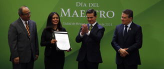El presidente Enrique Peña Nieto encabezó los festejos del Día del Maestro, en Los Pinos. Ahí entregó reconocimientos por antigüedad y desempeño a docentes Foto Jesús Villaseca