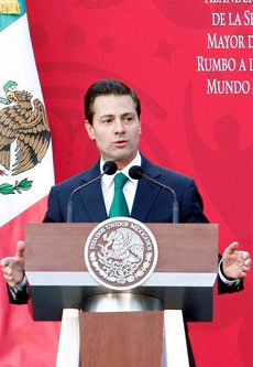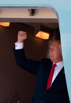 El presidente Enrique Peña Nieto durante el abanderamiento de la selección mexicana de futbol, en Los Pinos, y el mandatario Donald Trump, en su arribo a la ciudad de Dallas, Texas, en visita de trabajo Fotos Roberto García Ortiz y Afp