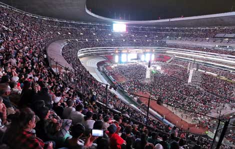 En su cierre de campaña en Ciudad de México, Andrés Manuel López Obrador, candidato de la coalición Juntos Haremos Historia, rebasó por mucho el aforo del estadio Azteca. En su discurso hizo mención y elogio a personajes de esta casa editorial, como Carlos Payán, José María Pérez Gay, Elena Poniatowska, Carlos Monsiváis, Hugo Gutiérrez Vega y Luis Javier Garrido. Foto Marco Peláez