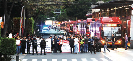 Afectados por el sismo de septiembre pasado bloquearon ayer vialidades de la capital en protesta por el incumplimiento de las autoridades a los compromisos establecidos para la reconstrucción de su patrimonio. Foto Víctor Camacho