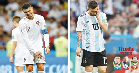 Rumores, polémica y poco futbol ensombrecieron la actuación de Argentina, que ayer se despidió de Rusia al ser eliminada 4-3 por Francia, con la actuación vertiginosa de Kylian Mbappé, quien terminó por eclipsar a Messi. En tanto, Uruguay despidió a Cristiano Ronaldo, al imponerse 2-1 a Portugal; la escuadra sudamericana enfrentará ahora a Les Bleus en cuartos de final. Edinson Cavani (7 y 62) se encumbró con dos golazos, mientras CR7 vivió entre sombras su último partido en la Copa 2018. Foto Ap. Agencias