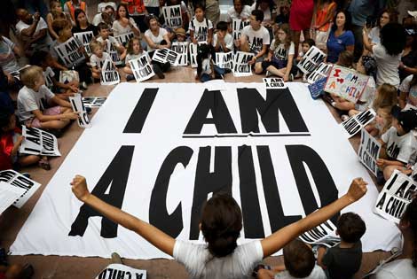 ▲ Al vencer el plazo judicial para que el gobierno de Estados Unidos reúna a los más de 2 mil 500 niños de entre cinco y 17 años que separó de sus padres inmigrantes, cientos de menores siguen lejos de sus familias. Autoridades reconocieron que unos 431 adultos ya fueron repatriados sin sus hijos. En la imagen, protesta ayer en Washington. Foto Afp