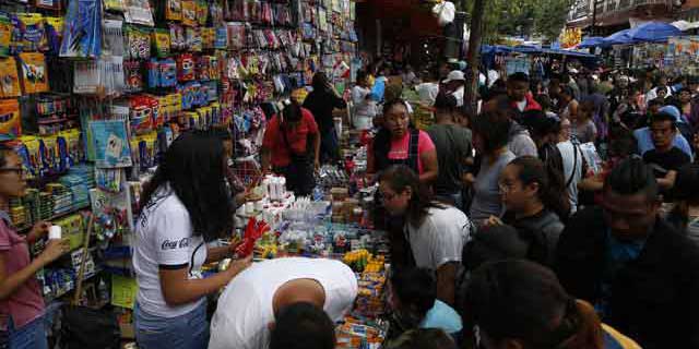 ▲ Miles de familias buscan en calles del Centro Histórico de Ciudad de México los mejores precios de útiles escolares. Según un estudio privado, para el próximo ciclo de educación básica, que comienza el 20 de agosto, los padres gastarán en promedio 3 mil 95 pesos en útiles, uniformes y zapatos por hijo, pero podría aumentar si requieren artículos electrónicos. Foto Jesús Villaseca