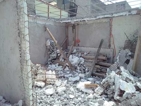 ▶ Las viviendas, edificadas con malla, unicel y revestidas de cemento, que se entregaron de forma gratuita a damnificados de la unidad Santa Cruz Meyehualco, comenzaron a ceder bajo el peso de los techos. Propietarios señalaron que no hubo supervisión de las obras e incluso han tenido que demolerlas; también se les trasmina el agua de lluvia. Foto La Jornada