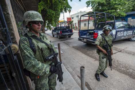 ▲ Los retenes se han desplegado en varias zonas de la capital de Sinaloa. Ayer, integrantes del Ejército, apoyados por corporaciones policiacas, detuvieron a un hombre que intentó escapar en una camioneta para evadir una revisión en la colonia Lázaro Cárdenas. La captura causó zozobra entre vecinos, debido a que, aseguraron, hubo una persecución y disparos. Foto Afp