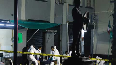 ▲ De acuerdo con la Secretaría de Seguridad Pública de Ciudad de México, los hechos ocurrieron poco antes de las 10 de la noche en el Callejón de la Amargura, donde quedaron tres de los cuerpos. Extraoficialmente se informó que algunos de los agresores vestían trajes de mariachis, y al ubicar a sus víctimas sacaron armas largas y cortas con las que dispararon, luego de lo cual huyeron a bordo de motocicletas. Se prevé que aumente la cifra de fallecidos. Foto Víctor Camacho