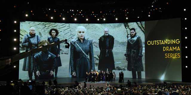 ▲ En su regreso a las pantallas con la séptima temporada, la serie, basada en los libros de George R. R. Martin, se llevó el premio más importante en la gala a lo mejor de la televisión estadunidense, que se realizó en el teatro Microsoft, en Los Ángeles, California. The Marvelous Mrs. Maisel obtuvo el galardón a la mejor serie de comedia. Foto Afp