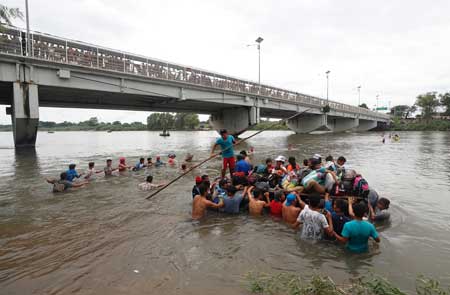 ▲ La imagen, en el puente que divide a México y Guatemala. Foto Ap