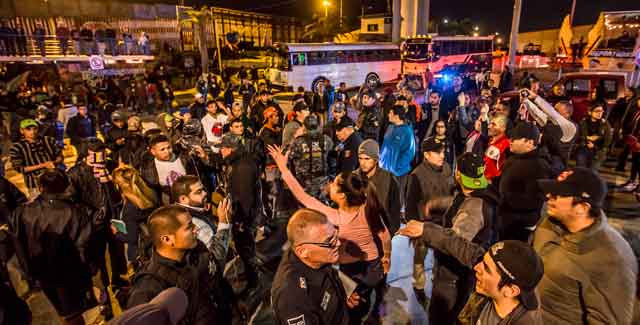 hordaa los desplazados, el edil panista Juan Manuel Gastélum pidió aplicarles el artículo 33 constitucional. Aseguró que realizará una consulta para decidir si los siguen recibiendo. En Playas de Tijuana, los colonos exigieron a los migrantes que se fueran a otro lugar. Los centroamericanos se trasladaron a albergues para evitar pugnas. Foto Notimex