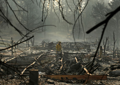 Rescatistas continuaban buscando este viernes a mil personas desaparecidas en una localidad del norte de California que fue reducida a cenizas por el incendio forestal más letal en la historia del estado; decenas de bomberos buscan contenerlo desde hace una semana. Foto Ap