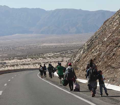 ▲ La dependencia informó que funcionarios de los tres niveles de gobierno e integrantes del próximo mandato han sostenido reuniones para garantizar la ayuda humanitaria a los migrantes. Ayer, unos mil 500 desplazados (imagen) salieron de Mexicali hacia Tijuana, en un viaje de 176 kilómetros, para solicitar asilo en Estados Unidos. La mayoría lo hizo a pie. Foto Ap
