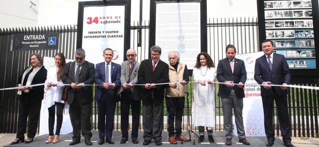 ▲ En la galería al aire libre de ese cuerpo legislativo, sobre Paseo de la Reforma, fue inaugurada ayer la exposición 34 años de La Jornada. Treinta y cuatro fotografías clásicas. Carlos Payán, director fundador de esta casa editorial, dijo: