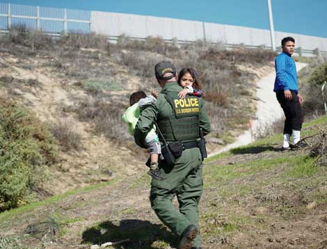 ▲ Momento en que integrantes de la Patrulla Fronteriza estadunidense detienen a una familia hondureña que cruzó ilegalmente la valla limítrofe en la zona conocida como Playas de Tijuana, Baja California. El embajador en México de ese país centroamericano informó que alrededor de 100 de sus compatriotas han sido aprehendidos en ese tipo de intentos. Foto Jair Cabrera