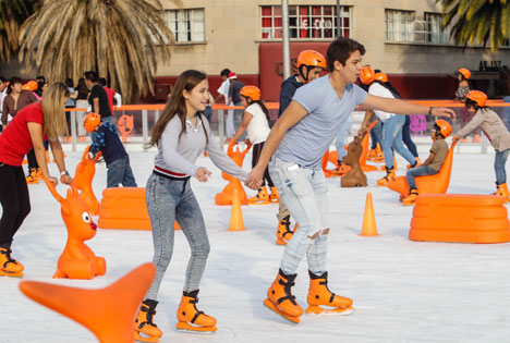 ▲ El gobierno de la capital del país impulsará el próximo año el Programa Integral de Turismo Social, creado en la administración de Cuauhtémoc Cárdenas para permitir a personas en condiciones de vulnerabilidad social acceder a espacios culturales, de entretenimiento y espectáculos públicos y privados. Ayer se realizó la primera de tres verbenas navideñas en la Plaza de la República. En la imagen, pista de hielo del Monumento a la Revolución. Foto Yazmín Ortega