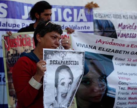 ▲ Familiares y amigos de jóvenes desaparecidas y víctimas de feminicidio se manifestaron frente a las instalaciones de la procuraduría de Ciudad de México en demanda de justicia. Denunciaron que en los casos de Marisela Vanessa Díaz, Pamela Gallardo Volante, Itzel Herrera, Leslye Hernández, Sarahí López y Viviana Garrido no se ha respetado el protocolo de búsqueda. Foto Alfredo Domínguez