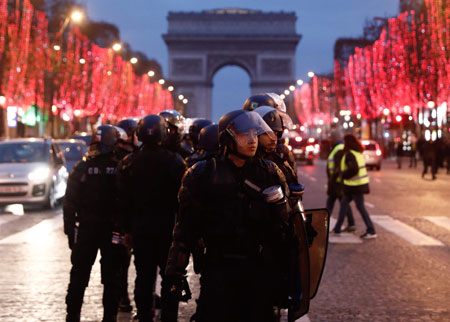 ▲ Más de 12 mil personas se manifestaron otra vez este sábado en Francia, en lo que fue el séptimo fin de semana consecutivo de protestas contra la política fiscal del presidente Emmanuel Macron. En París (imagen), los inconformes lanzaron proyectiles a la policía, que respondió con gases lacrimógenos y detenciones. Foto Afp