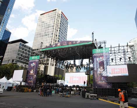 ▲ Ciudad de México recibirá 2019 con un concierto de la cantante Margarita, La diosa de la cumbia, en la glorieta de La Palma, aunque sin espectáculo de pirotecnia, por lo que se echará mano de fuegos artificiales virtuales, los cuales se mostrarán en pantallas de video, dijo el titular de Cultura capitalino, Alfonso Suárez del Real. En la imagen, trabajos finales en el escenario sobre Paseo de la Reforma, ayer. Foto Roberto García Ortiz