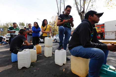 ▲ Filas de hasta medio kilómetro se observaron ayer en Morelia, Michoacán, para la compra de combustibles en bidones. Se informó que permanecieron cerradas alrededor de 70 por ciento de las gasolinerías. El gobernador Silvano Aureoles exhortó a la población a evitar las compras de pánico y confió en que pronto se regularice el suministro por parte de Pemex. Foto Ignacio Juárez