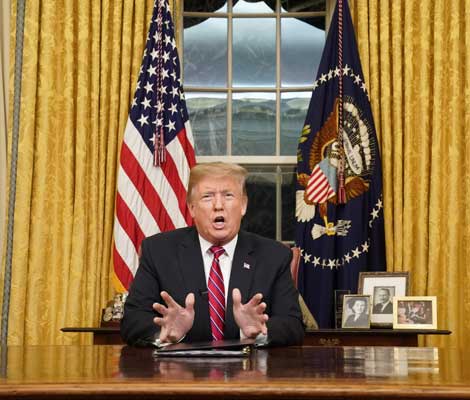 La solución para la crisis de seguridad que vive Estados Unidos es que los demócratas apoyen el proyecto de ley que defienda nuestras fronteras y reabra mi gobierno, incluyendo los 5 mil 700 millones de dólares para el muro, expuso el presidente Donald Trump en su primer mensaje de 2019 a la nación desde la Oficina Oval. Afirmó que su deseo es poner fin al