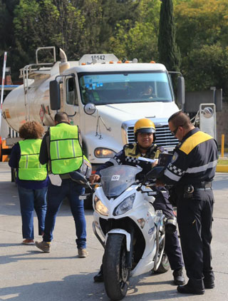 ▲ En el cuarto día de desabasto de combustibles en Ciudad de México, en el que se incrementaron los bloqueos viales y las estaciones que ya no dieron servicio, se desplegaron 23 mil policías para intensificar la vigilancia y evitar conflictos. La imagen, en el centro de distribución de Pemex en Azcapotzalco. Foto Luis Castillo