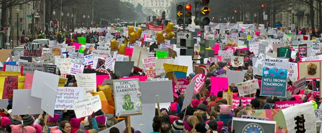 ▲ Miles de personas se manifestaron este sábado en varias ciudades de Estados Unidos en apoyo a la tercera edición de la Marcha de Mujeres, con la que exigen respeto a sus derechos y expresan rechazo al gobierno de Donald Trump. Ayer, el mandatario propuso al Congreso dar tres años de alivio legislativo a 700 mil dreamers a cambio de la aprobación de recursos para el muro, en un intento por dar fin al cierre parcial del gobierno federal. La imagen, en Washington. Foto Ap