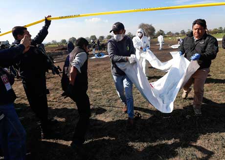 ▲ Peritos terminaron ayer al mediodía el levantamiento de seis cuerpos completos y 56 desmembrados en el kilómetro 266 del ducto Tuxpan-Tula que explotó este viernes cuando cientos de pobladores recogían la gasolina Premiun que se derramaba. Familiares de desaparecidos exigieron entrar a la zona para verificar que no hubieramás víctimas y hallaron más restos. Foto Víctor Camacho