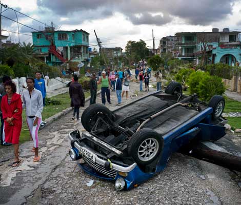 ▲ El meteoro y fuertes lluvias, ocurridos entre la noche del domingo y la madrugada del lunes en La Habana, dejaron sin electricidad, agua y telefonía a miles de personas. También se reportaron 125 derrumbes de viviendas. El meteorólogo José Rubiera explica: ’’Es un fenómeno raro para un país tropical y tuvo vientos hasta de 300 kilómetros por hora’’. Foto Ap