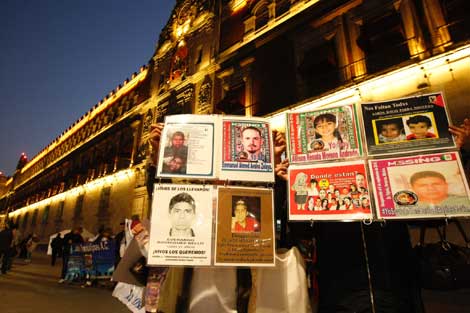 ▲ Alrededor de 150 familiares de personas desaparecidas se manifestaron en la madrugada de ayer frente a Palacio Nacional, momentos antes de que fuera presentada por el gobierno federal la estrategia de aplicación de la ley general en esa materia. Un grupo de ellos fue recibido más tarde por autoridades, a las que exigieron resultados y mantener esta apertura. Foto Roberto García Ortiz