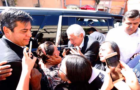 ▲ El presidente Andrés Manuel López Obrador pidió detener la marcha de su vehículo para atender a una mujer que cayó al piso al intentar saludarlo. El incidente ocurrió luego de participar en el 102 aniversario de la conmemoración de la Constitución. Ahí refirió que la Carta Magna está muy remendada y corresponderá a las nuevas generaciones elaborar una nueva. Dijo que una de las principales luchas de su gobierno será tipificar a la corrupción como delito grave. Foto Cristina Rodríguez