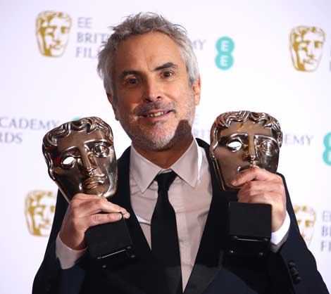 ▲ Con siete nominaciones, el filme del cineasta mexicano obtuvo los galardones de la Academia Británica de las Artes Cinematográficas y de la Televisión en: dirección, fotografía, cinta de habla no inglesa y película, frustrando la noche a La favorita, pese a que ésta logró siete máscaras. Con sus triunfos, Roma se enfila a toda velocidad hacia los premios Óscar. Foto Ap