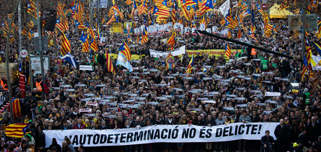 ▲ De acuerdo con cifras oficiales, 200 mil personas acudieron este sábado a la marcha convocada por los partidos secesionistas y el gobierno catalán, presidido por Quim Torra, en protesta por la