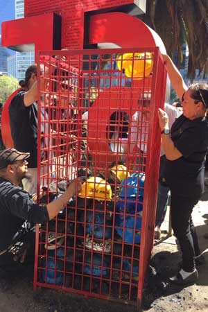 ▲ El presidente Andrés Manuel López Obrador señaló que pedirá a Grupo México, propietario de la mina ubicada en Nueva Rosita, Coahuila, que analice con expertos el rescate de 63 de los 65 trabajadores que perecieron atrapados tras un estallido y colapso de varios túneles, el 19 de febrero de 2006. Deudos de las víctimas colocaron ayer una jaula con carbón y cascos en el antimonumento Pasta de Conchos, en Paseo de la Reforma, en memoria de sus familiares. Confiaron en el apoyo del nuevo gobierno. Foto Guillermo Sologuren