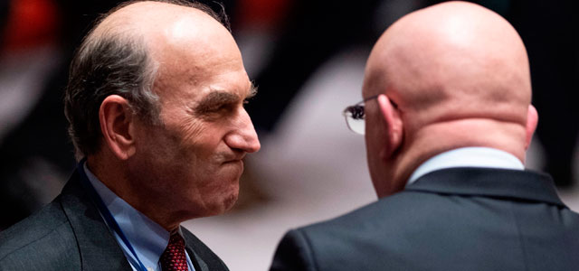 libresen el país sudamericano. Más tarde, una propuesta de Moscú, que solicitaba respeto a la soberanía venezolana, no tuvo apoyo suficiente. En la imagen, Elliot Abrams, enviado especial de Donald Trump, y el embajador ruso, Vasili Nebenzia. Foto Afp