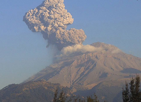 ▲ La Coordinación Nacional de Protección Civil pidió a los habitantes de comunidades cercanas al volcán tomar precauciones para evitar daños a la salud ante la emisión de ceniza de este viernes, que alcanzó más de dos kilómetros de altura; recomendó tapar recipientes con agua y coladeras, así como evitar actividades a la intemperie. Foto tomada del Twitter de SkyAlert