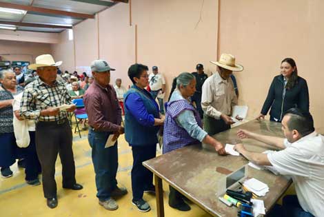 ▲ Entrega en Zacatecas de la pensión universal de 2 mil 550 pesos bimestrales, otorgada por el gobierno federal a adultos mayores de 68 años. Según el censo realizado en ese estado, más de 100 mil mujeres y hombres son los beneficiarios. También se incluye a quienes cumplieron 65 años y habitan en zonas indígenas y de alta marginación. Foto Alfredo Valadez