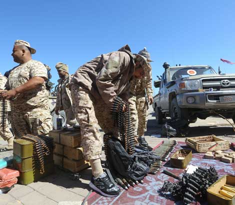 ▲ El jefe del autoproclamado Ejército Nacional de Libia mantuvo su ofensiva para tomar el control de la capital del país africano, a pesar de los llamados de Estados Unidos, Rusia y la Unión Europea al cese de hostilidades que han causado 51 muertos desde el jueves pasado. En la imagen, combatientes del Gobierno de Unidad Nacional se alistan para enfrentar al militar rebelde. Foto Afp