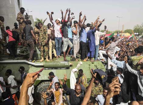 ▲ El teniente coronel Awad Ibnouf, hasta ayer ministro de Defensa, encabeza un consejo militar de transición que permanecerá en el poder durante dos años, una decisión que rechazaron miles de civiles que siguieron en las calles. El depuesto mandatario Omar al Bashir gobernó con mano de hierro durante tres décadas y enfrenta acusaciones por crímenes de lesa humanidad. Foto Afp