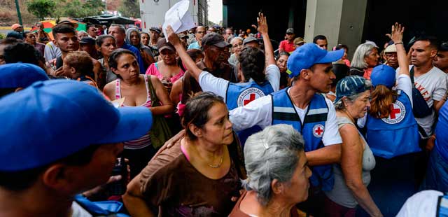 ▲ Unas 24 toneladas de suministros médicos y fármacos, así como 14 plantas eléctricas, enviados por la Cruz Roja y la Media Luna Roja, fueron desembarcados ayer en el aeropuerto Simón Bolívar, en Caracas, luego del acuerdo con el presidente Nicolás Maduro. Los productos serán repartidos en ocho hospitales y en más de 30 ambulatorios del organismo internacional. Foto Ap
