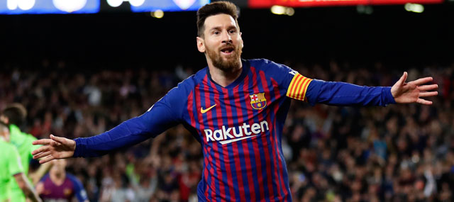 ▲ Con una genialidad del astro argentino Lionel Messi, el Barcelona conquistó su título 26 en la liga española de futbol al derrotar ayer 1-0 al Levante en el Camp Nou. El cinco veces ganador del Balón de Oro –en la imagen, luego de anotar su gol número 34– ofreció el título –el octavo en los últimos 11 años– a su equipo con un disparo cruzado en el minuto 62, para dar el primer paso hacia el triplete que persigue el equipo azulgrana (Liga-Copa-Copa de Europa) en esta temporada. Foto Ap.