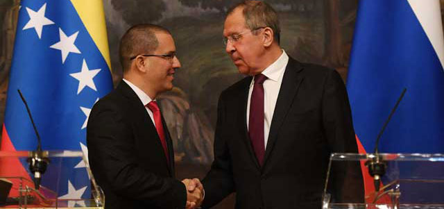 ▲ Los cancilleres de Venezuela, Jorge Arreaza (izquierda), y de Rusia, Serguei Lavrov, se reunieron ayer en Moscú, un día antes del encuentro que sostendrá este último con su colega estadunidense, Mike Pompeo, en la ciudad finlandesa de Rovaniemi.